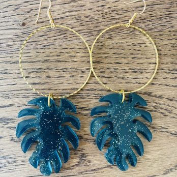 Made of resin and, different color pigments and glitter. Surgical steel earring hooks.