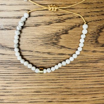 4mm Semiprecious beaded bracelets with gold plated center beads, cord and a macrame knot to adjust your wrist.